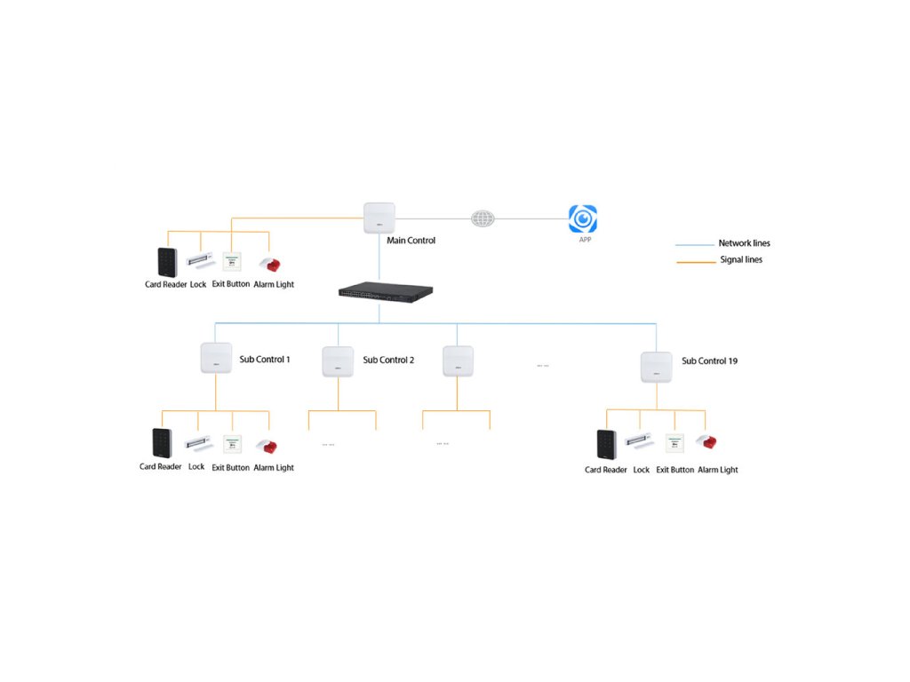 IP prístupový kontrolér, prevedenie plošný spoj v plastovom krytí, pripojenie 2x RFID čítačiek (Wiegand / RS-485 ), nastaviteľné ovládanie 2 dvier jednosmerne/ 1 dvier obojsmerne, kapacita 1 000 užívateľov, 300 000 udalostí, komunikácia s PC cez TCP/IP alebo RS-485, LED signalizácia stavov, 2x NO/NC relé zámku (5 A / 30 V DC), 2x napäťové relé 12 V DC pre napájanie z PoE až do 1A, 2x vstup dverného kontaktu, 2x vstup odchodového tlačidla, 2x relé alarm výstup, 2x alarm vstup, napájanie 12 V DC alebo PoE 802.3af, odber max. 2 A / 12 V DC (zdroj nie je súčasťou), rozmery 186,4 x 185,8 x 58,3 mm, interiérové použitie, umiestnenie v chránenej zóne, ovládanie cez webový prehliadač, možnosť rozšíriť systém až do 40 dverí / 20 zariadení
