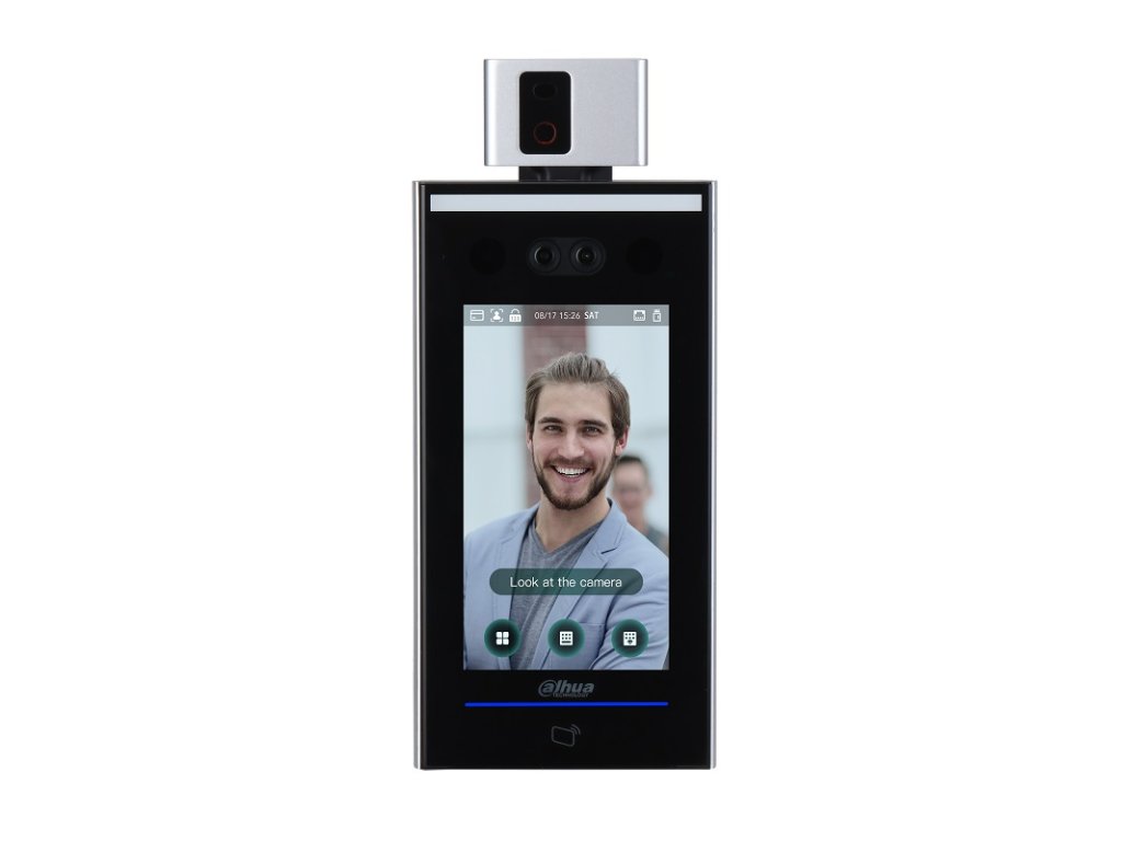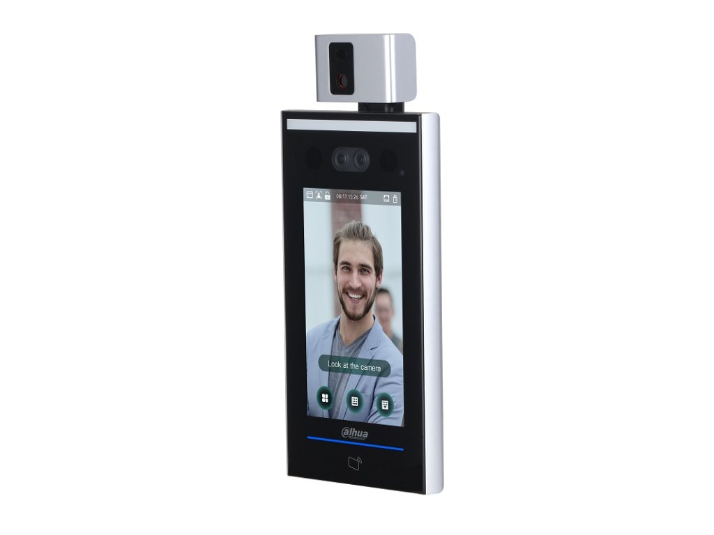 IP prístupová jednotka s biometrickým snímačom tváre, detekciou telesnej teploty a rúška, RFID MIFARE 13,56 MHz, kapacita 100 000 tvárí, 100 000 kariet, 300 000 udalostí, komunikácia s PC cez TCP/IP, podpora DSS Express, zvuková a LED signalizácia, 1x NO/NC relé zámku, 1x vstup dverného kontaktu, 2x relé výstup alarmu, 1x relé vstup odchodového tlačidla, Wiegand 26 vstup/výstup pre pripojenie podružnej čítačky, napájanie 12 V DC (zdroj je súčasťou balenia), rozmery 313 x 130 x 37 mm, interiérové použitie. Firmware pre funkciu menného zoznamu je iba v Anglickom jazyku.