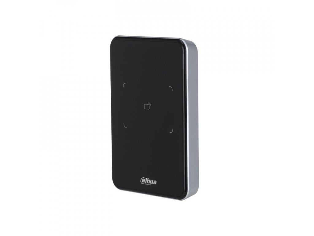 Prístupová čítačka RFID, čítanie bezkontaktných kariet (MIFARE, 13,56 MHz), RS-485 komunikácia (2 vodiče) alebo Wiegand34 s prístupovýmy kontrolérmi, zvuková a LED signalizácia, napájanie 100 mA / 12 V DC (zdroj nie je súčasťou), IP 66, exteriérové použitie, plast, montáž na povrch, rozmery 86 x 123 x 15 mm
