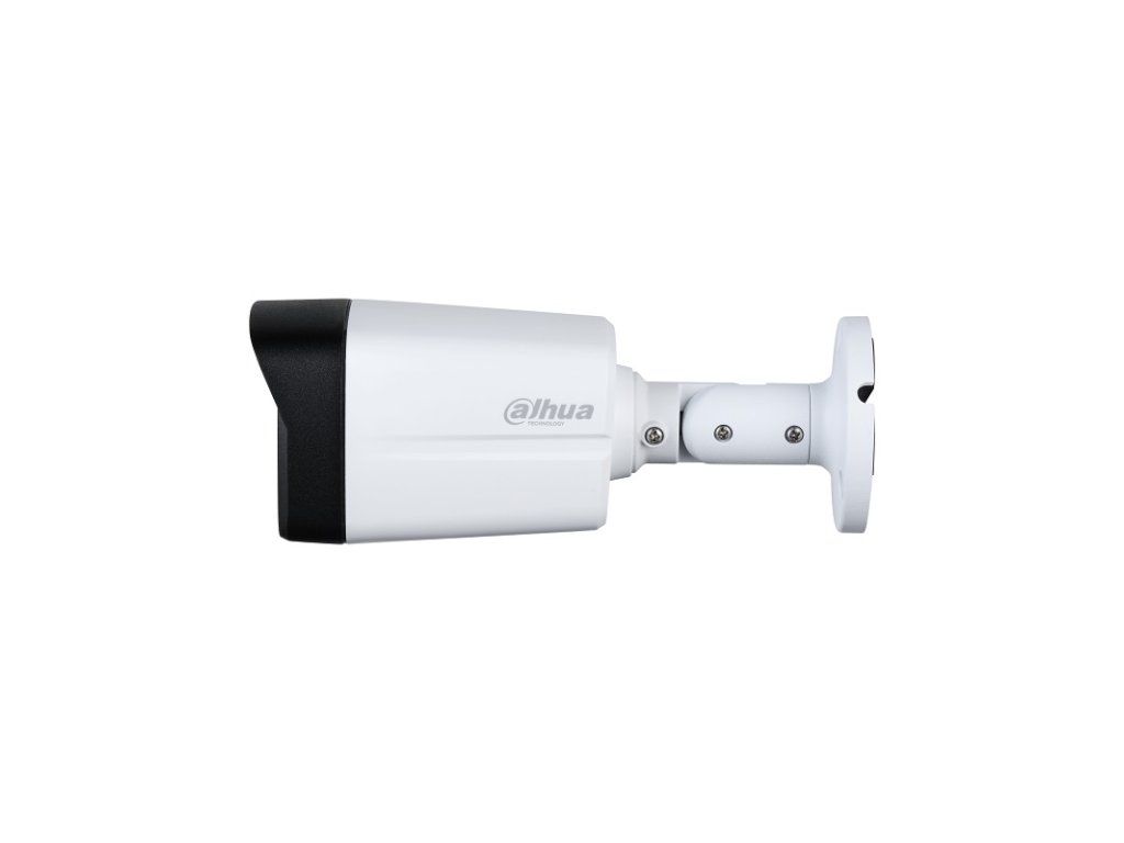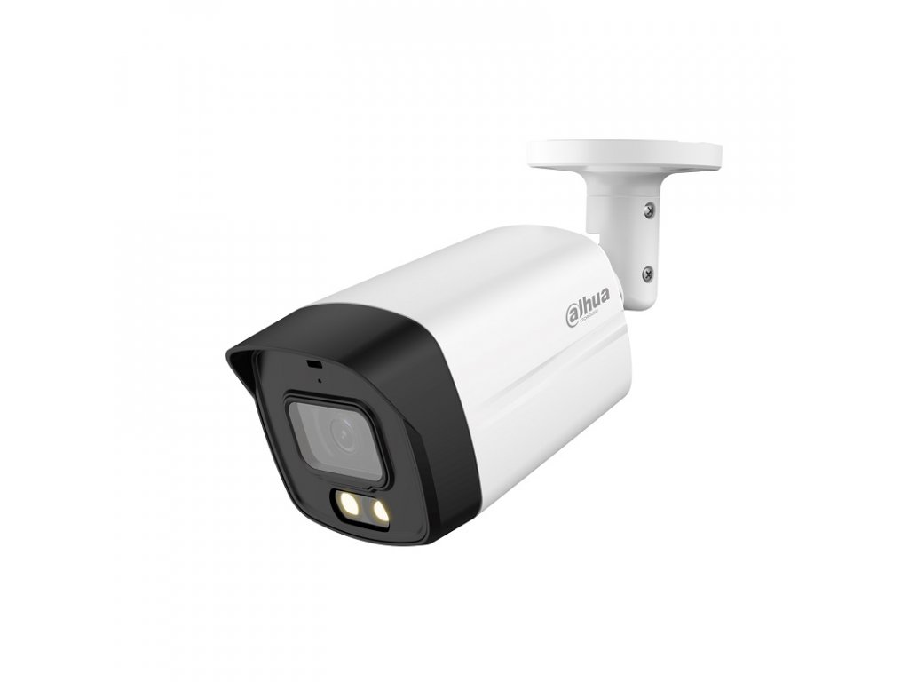 5 Mpx Full-color HDCVI kompaktná kamera, LED (Warm light) s prísvitom do 40 m, 5Mpx CMOS, rozlíšenie 2880 × 1620 px @ 30 fps, citlivosť 0,001 lx / F1.0 pri 0 lux (LED prísvit), pevný objektív 3,6 mm, uhol záberu H: 88°, V: 46°, D: 104°, horizontálne otáčanie 0°–360°, vertikálny náklon 0°–90°, rotácia 0°–360°, AWB, WDR 120 dB, BLC, AGC, 3D NR, vstavaný mikrofón, pracovná teplota od -40 °C do +60 °C, IP 67, napájanie 12 V DC ± 30 %, spotreba max 6,4 W (12 V DC), rozmery 198,4 × 80,2 × 76,2 mm, hmotnosť 0,33 kg