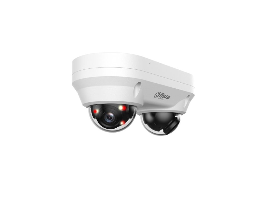 2x 4 Mpx dome IP kamera, exteriérová, Day/Night, Smart IR LED 30 m, WL 20 m, 1 /2,7" 4 Megapixel CMOS, rozlíšenie 2688 x 1520 px @ 1-20 fps, 2560 x 1440 px @ 1-25/30 fps, citlivosť 0,006 lx @ F1.6, objektív 2,8 mm, uhol záberu H: 101,5°, V: 54,7°, D: 120,8°, AWB, BLC, HLC, WDR 120dB, 3DNR; kompresia H.265 / H.264 / H.264H / H.264B / MJPEG (Sub Stream), podpora smart Codec, RTMP; ONVIF kompatibilné; inteligentné funkcie: IVS (Perimeter Protection), Smart Search, SMD Plus; mikrofón, RJ-45, Audio I/O 1/1 RCA port, Alarm I/O 1/1, SD karta max. 256 GB, napájanie 12 V DC / PoE+ (802.3at), pracovná teplota od -40 °C do +60 °C, IP 67, rozmery 164,0 x 84,0 x 69,4 mm, hmotnosť 0,63 kg, IP 67, IK 10