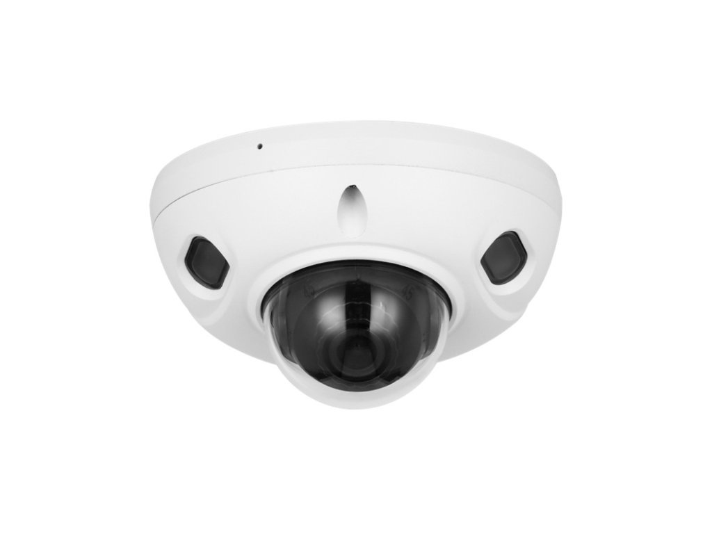 5 Mpx minidome IP kamera, exteriérová, Day/Night, IR LED 30 m, 1/2.7" 5 Megapixel progressive CMOS, rozlíšenie 2960 × 1668 px @ 20 fps, 2688 × 1520 px @ 1–25/30 fps, citlivosť 0,005 lx @ F1.4 (Color, 30 IRE), objektív 2,8 mm, uhol záberu H: 111°, V: 58°, D: 132°, AWB, AGC, ROI, BLC, HLC, WDR 120 dB, AI-SSA, 3DNR, kompresia H.265 / H.264 / H.264H / H.264B / MJPEG (Sub Stream), podpora Smart a AI kodekov, ONVIF kompatibilná, RTMP; Inteligentné funkcie: QuickPick, IVS (Perimeter Protection), Smart Search, SMD 4.0, AI-SSA; Audio I/O 1/1, Alarm I/O 1/1, slot pre MicroSD kartu až do 256 GB, vstavaný mikrofón; napájanie 12 V DC / PoE (802.3af), spotreba max. 5,9 W pri 12 V DC, pracovná teplota od -40 °C do +60 °C, IP 67, IK 10, 64,8 × ø111,0 mm, hmotnosť 0,423 kg.