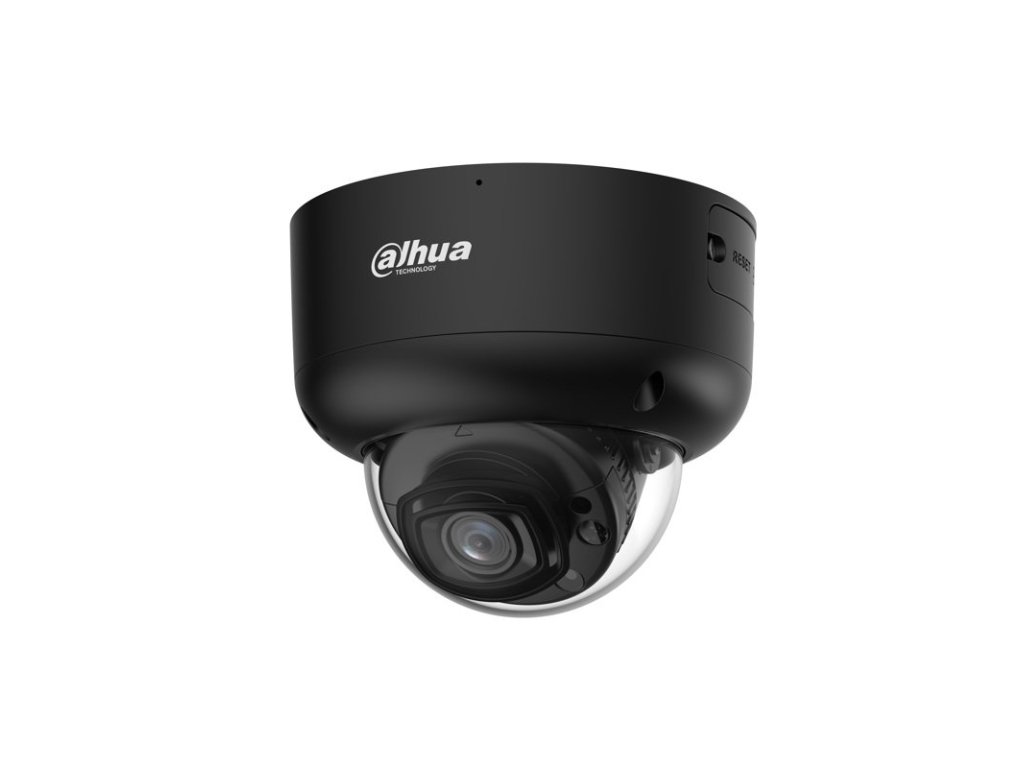8 Mpx Dome IP kamera, exteriérová, Day/Night, IR 60 m, WL 50 m, 1/1.8" 8 Megapixel CMOS, rozlíšenie 3840 x 2160 px @ 1-25/30 fps, citlivosť 0,0005 lx @F1.0, objektív 3,6 mm, uhol záberu H: 93°, V: 50°, D: 111°; AWB, AI-ISP, BLC, HLC, WDR 130dB, AGC, ROI, 3DNR, SSA, Defog, LDC, WizColor; kompresia H.265 / H.264 / H.264H / H.264B / MJPEG (Sub Stream), RTMP, podpora Smart a AI Codekov, ONVIF kompatibilné; inteligentné funkcie: IVS (Perimeter Protection), Large AI model (Xinghan), SMD 4.0, AcuPick, Face Detection, People Counting, Queue Management, Heat Map, Video Metadata, Smart Search; Aktívne odstrašenie; RJ-45, zabudovaný mikrofón a reproduktor, micro SD karta max. 1 TB, alarm I/O 1/1, audio I/O 1/1, 1x RS-485, 1x 12 V DC output, napájanie 12 V DC / PoE+ (802.3at) / ePoE, Dual Power Backup, spotreba max. 23,9 W, pracovná teplota od -40 °C do +60 °C, IP67, IK10, rozmery 105,5 mm x ø126 mm, hmotnosť 0,73 kg, čierna verzia.