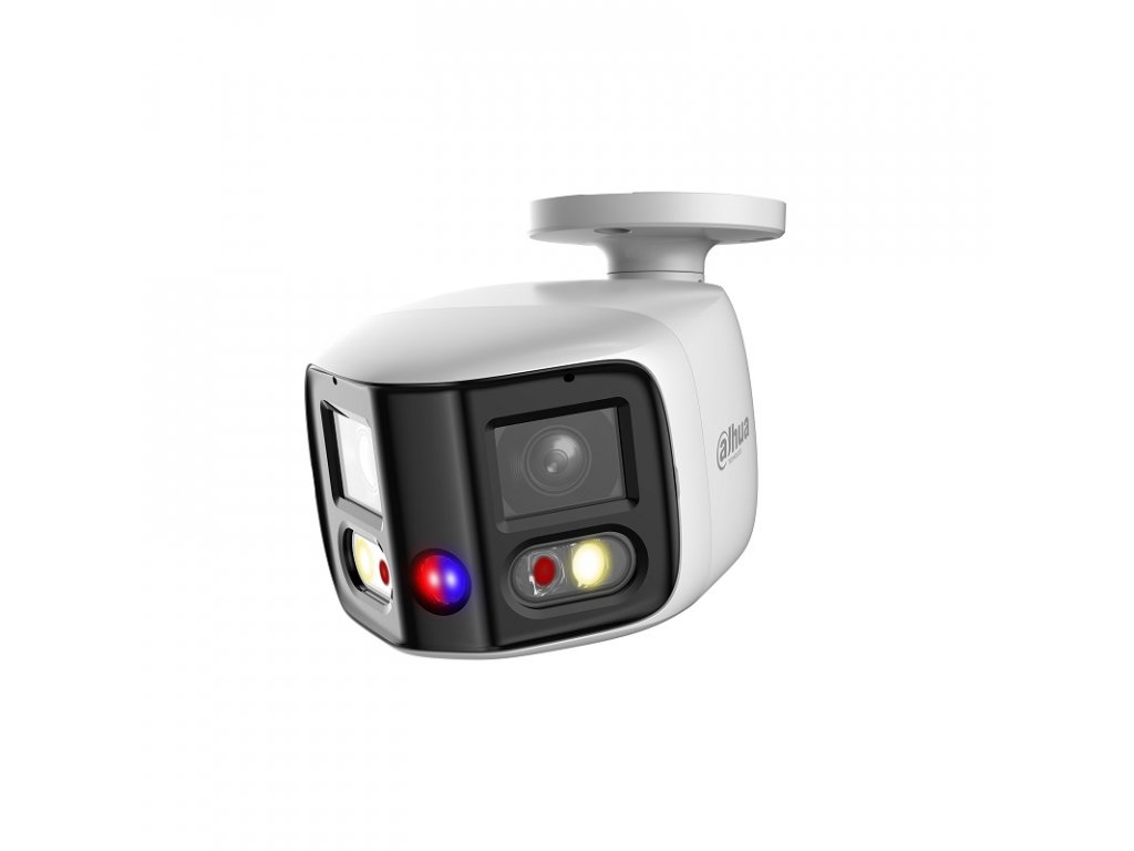 8 Mpx (2x 4 Mpx) kompaktná panoramatická Full-color IP kamera, exteriérová, Day/Night, IR LED s dosvitom 25 m, viditeľný prísvit 20 m, Dual 1/2.7" 2x 4 Megapixel progresívne CMOS, rozlíšenie 4096 x 1860 px @ 1-20 fps, citlivosť 0,005 lx @ F 1.4 (Color, 30 IRE), objektív 2,8 mm, uhol záberu H: 180°, V: 86°, AWB, BLC, HLC, WDR, 3DNR, AGC, ROI, Defog, Inteligentné funkcie: IVS (Perimeter Protection), SMD 4.0, Quick Pick, Smart Search, EPTZ, kompresia H.265 / H.264 / H.264H / H.264B / MJPEG (Sub Stream), podpora smart a AI codekov, ONVIF kompatibilné, slot na MicroSD kartu až 256 GB, vstavaný duální mikrofón a reproduktor, RJ-45, Audio I/O 1/1, Alarm I/O 1/1, napájanie 12 V DC / PoE(802.3af), pracovná teplota od -40 °C do +60 °C, IP 67, rozmery 183,1 x 99,0 x 78,0 mm, hmotnosť 0,695 kg