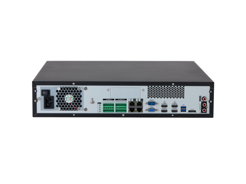 Dahua IVSS, 64-bit s vysoko výkonným viacjadrovým procesorom, Linux OS, webové a lokálne rozhranie, AI Aplikácie z kamier: Face detection, Face Recognition, Video Metadata, IVS, LPR, People Counting, Number People in Queue, Smoking Detection, Call Detection, Face a Body Detection, SMD, AcuPick; AI aplikácie na zariadení: Face Detection max. 16 kanálov, Face Recognition max. 16 kanálov (FD a FR na IVSS), max. 40 kanálov (FD na kamere a FR na IVSS), Video Metadata max. 16 kanálov, IVS max. 16 kanálov; 128-kanálvý, Dátový tok max. 512 Mbps, max rozlíšenie 32 Mpx; Smart H.265+ / H.265 / Smart H.264+ / H.264; ONVIF; Audio I/O 1/2, Alarm I/O 16/8, 8x Sata III max. 20 TB, 1x RS-232, 1x RS-485, 1x eSATA, USB 4x (2x 2.0 a 2x 3.0), 4x HDMI, 1x VGA, 4x RJ-45 10/100/1000; Napájanie 200-240 VAC, spotreba max. 38 W (bez HDD); Rozmery 2U, 439,7 x 446,2 x 89,0 mm, hmotnosť: 7,66 kg, pracovná teplota od 0 °C do +45 °C