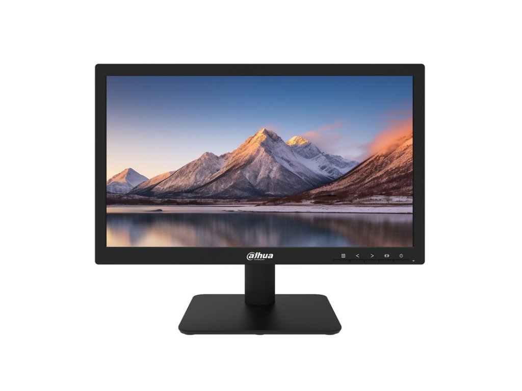 19,5" HD+ CCTV LED monitor, uspôsobený pre použitie 24 hod. / 7 dní v týždni, max. rozlíšenie 1600 x 900 px, 75 Hz, pomer strán 16:9, pozorovací uhol 90° (H) / 65° (V), 1x VGA vstup, 1x HDMI vstup, kontrast 600:1, jas 250 cd/m2, napájanie 12 V DC / 2 A, stojan na stôl, VESA 100x100, pracovná teplota od 0 °C do +40 °C, rozmery 464,8 × 283,5 × 48,3 mm (bez stojanu), hmotnosť 2,1 kg