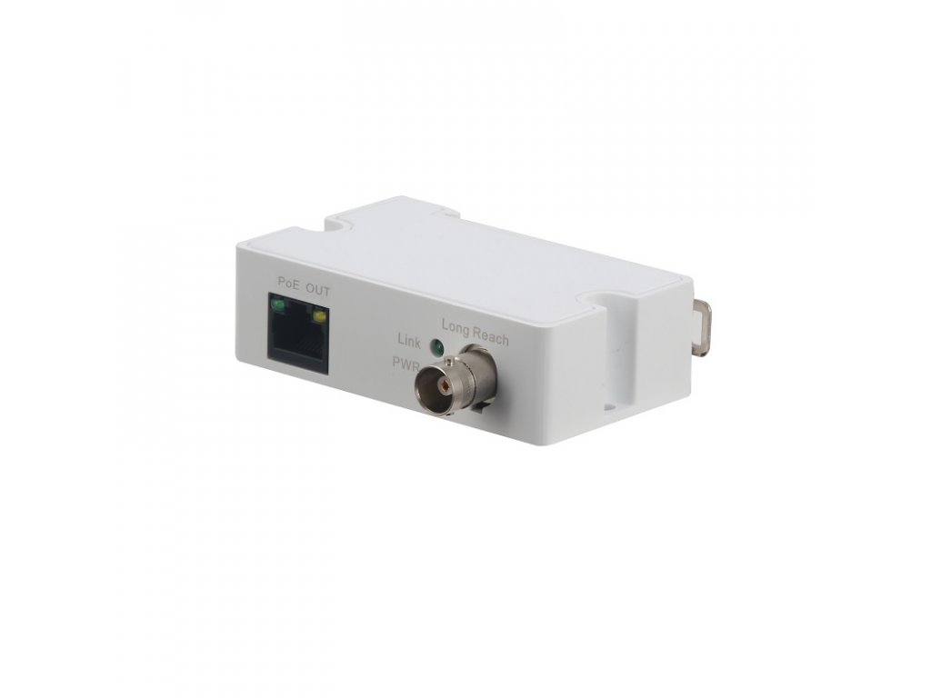 Prevodník (vysielač) podporujúci prevod dát i napájania z RJ-45 na BNC port, 1x RJ-45, 1x BNC, podpora kábla RG59, vzdialenosť 400 m => napájanie + sieť 100 Mbps, vzdialenosť 1000 m => napájanie + sieť 10 Mbps, podpora PoE/PoE+, ochrana proti blesku 4 kV, spotreba 2 W, pracovná teplota od -30 °C do +65 °C, hmotnosť 61 g, 79 x 52 x 23 mm
