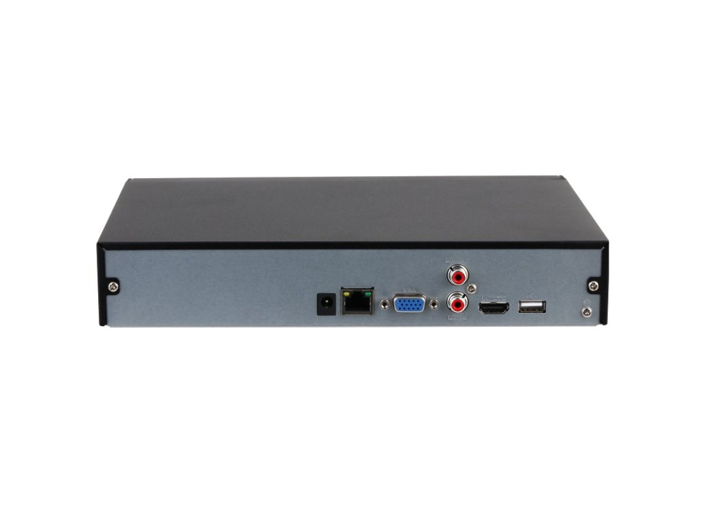 IP videorekordér 4 kanálový, kódovanie Smart H.265+ / H.265 / Smart H.264+ / H.264, 80 Mbps incoming, 80 Mbps recording, 60 Mbps outgoing, rozlíšenie kamery max. 12 Mpx, AI funkcie na NVR: SMD Plus 4 kanály, AI funkcie z kamier: Perimeter protection 4 kanály, SMD Plus 4 kanály, Face Detections 4 kanály, Face Recognition 4 kanály, 1x SATA max. 20 TB na 1 disk; Audio RCA I/O 1/1, 2x USB 2.0, 1x HDMI, 1x VGA, 1x 10/100 RJ-45 port, napájanie 12 V DC / 2 A, spotreba max. 10 W, pracovná teplota od -10 °C do +55 °C, hmotnosť 0,81 kg, rozmery 260,0 x 232,5 x 47,6 mm