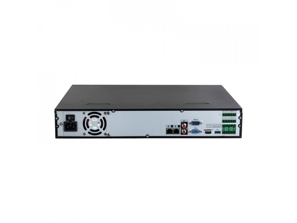 Videorekordér IP sieťový 32kanálový, záznam / živý obraz, podporované formáty Smart H.265+ / H.265 / Smart H.264+ / H.264 / MJPEG, záznam max. do 256 Mbps, maximálne rozlíšenie 16 Mpx na kameru, alarm I/O 16/4, 4x SATA III 3.5" HDD, max. 16 TB (bez HDD), podpora ONVIF, podpora IP PTZ Dahua a ITC kamier, AI by NVR - 2 kanály pre Perimeter Protection alebo 1 kanál pre Face Detection/Recognition vďaka NVR AI, 4 kanály pre SMD plus vďaka NVR, 2x RJ-45 port (10/100/1000 Mbps), 1x HDMI, 1x VGA, 1x RS-485, 1x RS-232, 2x USB , 1x eSATA, rozmery 2U, 440.0 mm × 415.6 mm x 76.0 mm, hmotnosť 4,25 kg (bez HDD), uši na uchytenie do racku sú súčasťou balenia