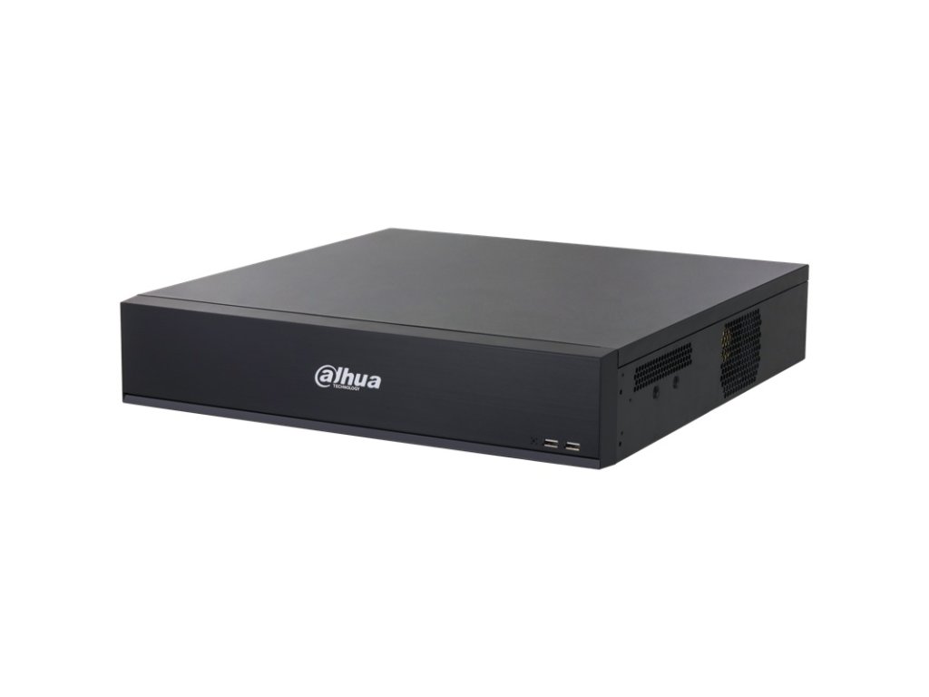 IP sieťový videorekordér, 64-kanálový, záznam / živý obraz / prehrávanie v 4K, OS Linux, podporované formáty Smart H.265+ / Smart H.264+ / H.264 / H.265; záznam max. do 512 Mbps (pri povolenej AI max. 200 Mbps), maximálne rozlíšenie 32 Mpx na kameru; 8x SATA III 3.5" HDD, max. 20 TB/HDD, RAID 0/1/5/6/10, podpora ONVIF, podpora IP PTZ kamier Dahua; video analytické funkcie na NVR: AcuPick max. 36 kanálov (NVR + kamera), Perimeter Protection max. 24 kanálov, Face Detection max. 8 kanálov, Face Recognition max. 32 kanálov (FD kamera + FR NVR), max. 8 kanálov (FR + FD na NVR), SMD Plus max. 32 kanálov / 64 kanálov pri SMD Plus kamere, Video Metadata max. 8 kanálov; podpora video analytických funkcií: AcuPick, Face Detection, IVS, Face Recognition, Video Metadata, SMD Plus, Stereo Analysis, distribúcia davu, počítanie osôb, ANPR, hustota dopravy, monitoring objektov; 2x RJ-45 port (10/100/1000 Mbps), 2x HDMI + 2x VGA, 2x RS-485 (1x half-duplex + 1x full-duplex), 1x RS-232, 4x USB (z toho 2x USB 3.0), 1x eSATA, Audio RCA I/O 1/2, Alarm I/O 16/8; 440,0 mm × 452,5 mm × 94,9 mm, 100–240 VAC, 50–60 Hz, prevádzková teplota od -10 °C do +55 °C.