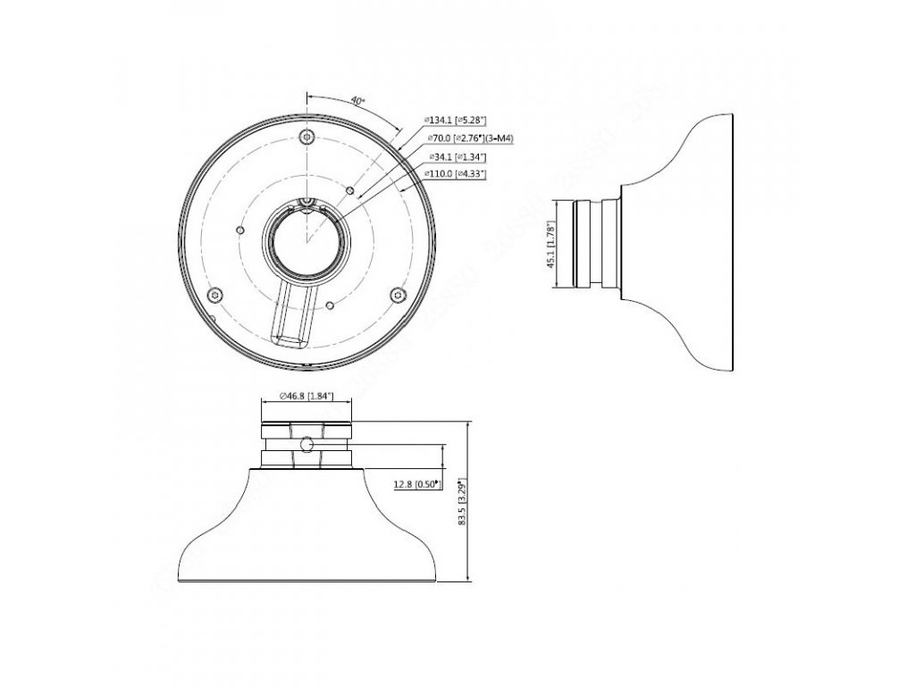Hliníkový držiak pre kamery Dahua, hmotnosť 0,29 kg, max. zaťaženie 1 kg, farba biela, pracovná teplota od -40 °C do +60 °C, rozmery ø 134,1 x 83,5 mm