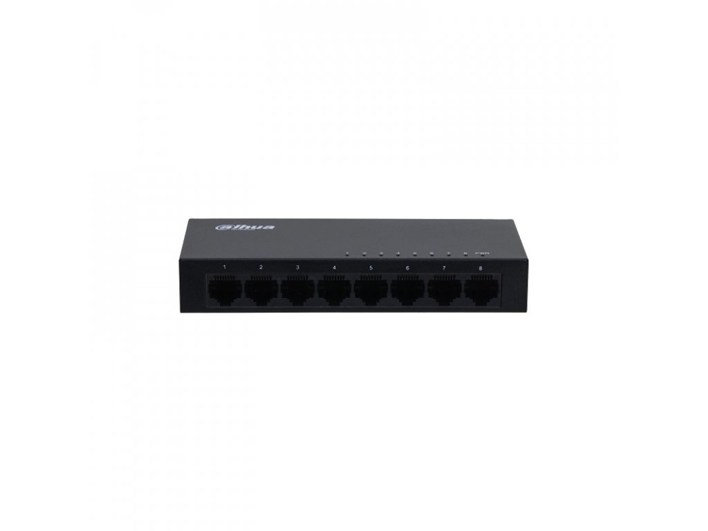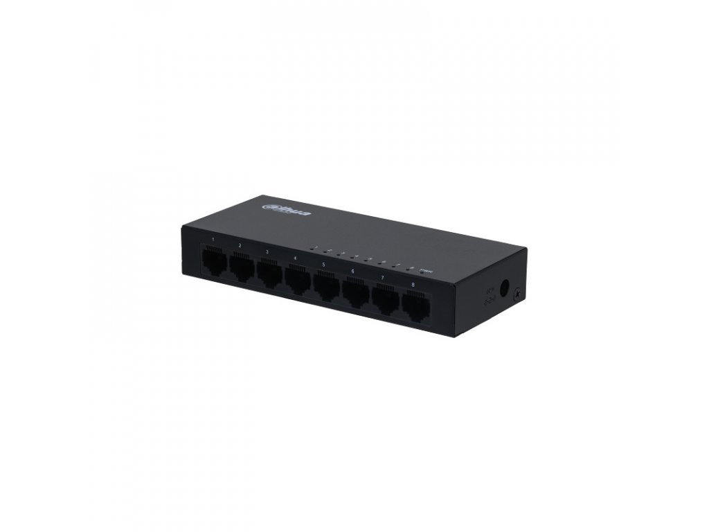 Dahua switch 8x 10/100/1000 Base-T, Swtching capacity 16 Gbit, napájanie 5 V DC / 1 A, pracovná teplota od 0°C do +40 °C, rozmery 133,5 x 56 x 22 mm, 0,23 kg