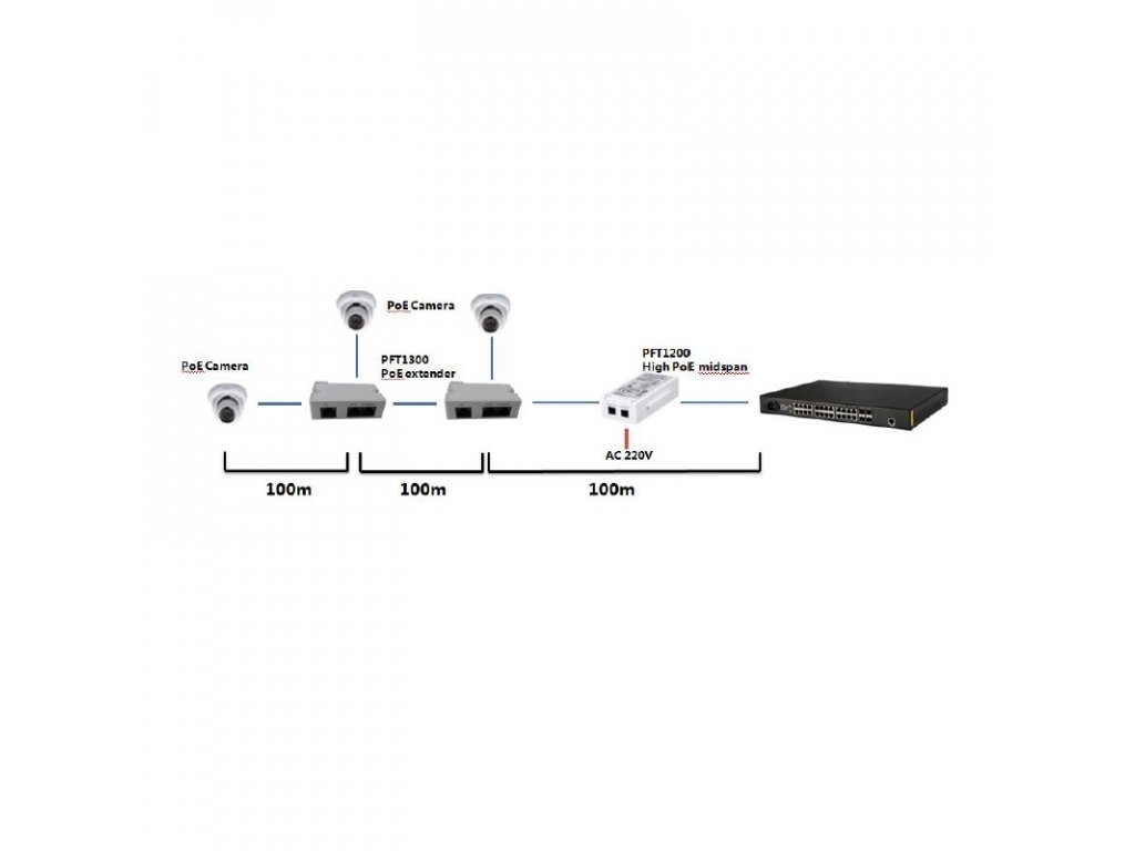 Kvalitný PoE extender, slúži na predĺženie TCP/IP+PoE na vzdialenosť až 300m v kombinácii s TAM01GT01GT-75, rozmery 79mm× 52mm× 23mm