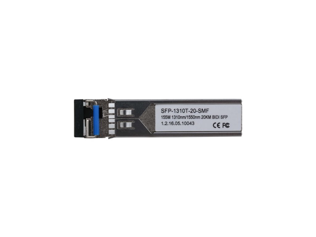 Optický modul, LC konektor, single-mode, 100 Mbps, 1550/1310 nm, 20 km. Pre správnu funkčnosť je potrebný proti kus SFP-1310R-20-SMF. Pracovná teplota od -40°C do +85°C. Rozmery 56,5 x 13,4 x 8,5 mm.
