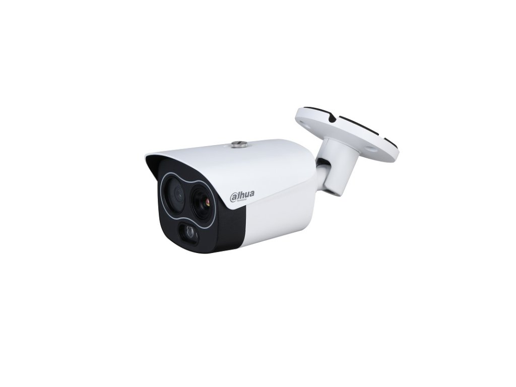 Bullet hybridná termokamera, exteriérová, senzor Vanadium Oxide Uncooled focal plane detector, rozlíšení termovízie 256 × 192 px @ 1-25 fps, tepelná citlivosť <40 mK @ F1.0, rozsah spektra 8–14 µm, rozteč pixelov 12 µm, objektív 3,5 mm, uhol záberu: H: 50,6°, V: 37,8°, AGC, 3D NR; rozlíšenie viditeľného spektra 1/2,7 CMOS 4 Mpx (2336 × 1752 px) @ 1-25 fps, objektív 4 mm, citlivosť 0,05 lux (Color), uhol záberu H: 71,2°, V: 52°, AWB, AGC, BLC, HLC, DWDR, 3D NR, RoI; IR prísvit 30 m; kompresia H.265 / H.264 / H.264H / MJEPG; ONVIF; inteligentné funkcie: Perimeter Protection, Heat Detection Alarm, Cold a Spot Trace, Human a Vehicle Classification, Smoking Detection, Call Detection; alarm I/O 2/2, audio I/O 1/1, 1x RS-485, slot na MicroSD kartu 256 GB, napájanie 12 V DC 1A / PoE (802.3af), spotreba max. <10 W, rozmery 205,5 x 90,4 x 90,1 mm, pracovná teplota od -30 °C do +60 °C, hmotnosť <0,9 kg