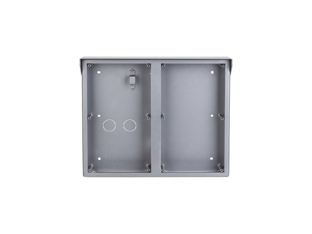 Inštalačná krabica so strieškou pre 2 x 2 moduly a rámik IP modulárneho systému Dahua VTO4202F, na omietku, hliník, rozmery 241 x 282 x 88 mm, pre inštaláciu sú potrebné dva rámiky VTM125