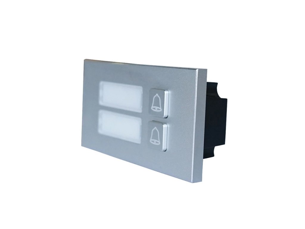 Polovičný modul pre IP Dahua modulárnu jednotku VTO4202F, 2 tlačidlá, podsvietené menovky, hliníkové prevedenie, nastavovanie cez webové rozhranie, napájanie z dvernej jednotky, montáž do inštalačného rámika, rozmery 100,0 x 49,9 x 30,5 mm