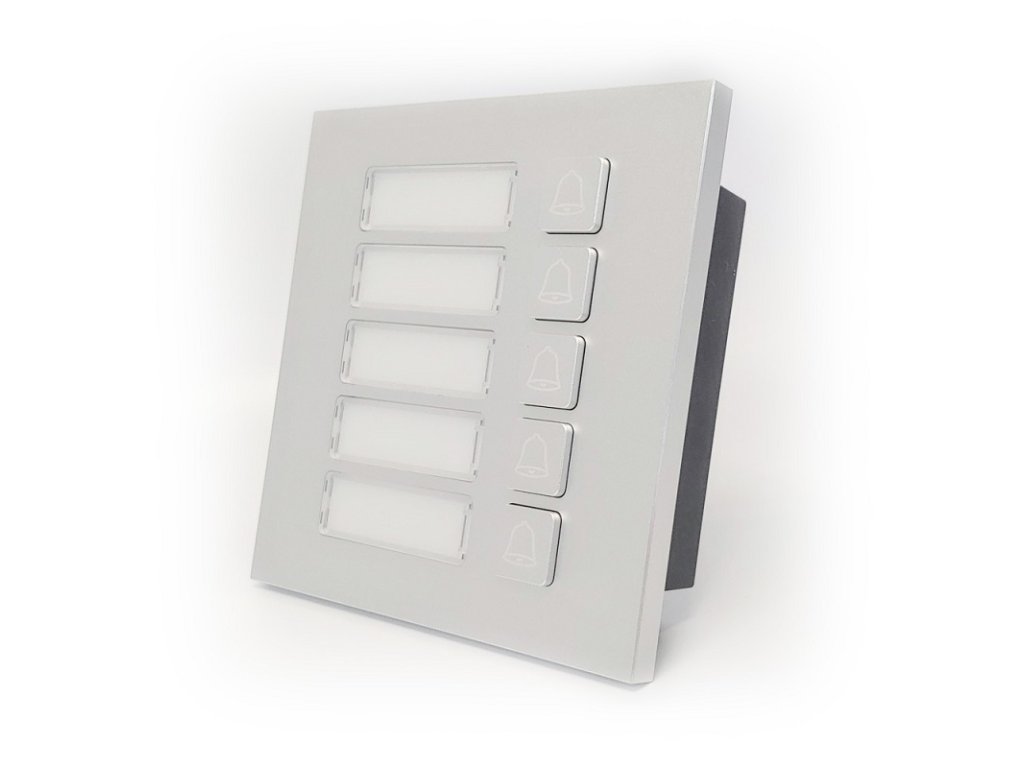 Modul pre IP Dahua modulárnu jednotku VTO4202F, 5 tlačidiel, podsvietené menovky, hliníkové prevedenie, nastavovanie cez webové rozhranie, napájanie z dvernej jednotky, montáž do inštalačného rámika, rozmery 100 x 100 x 31 mm