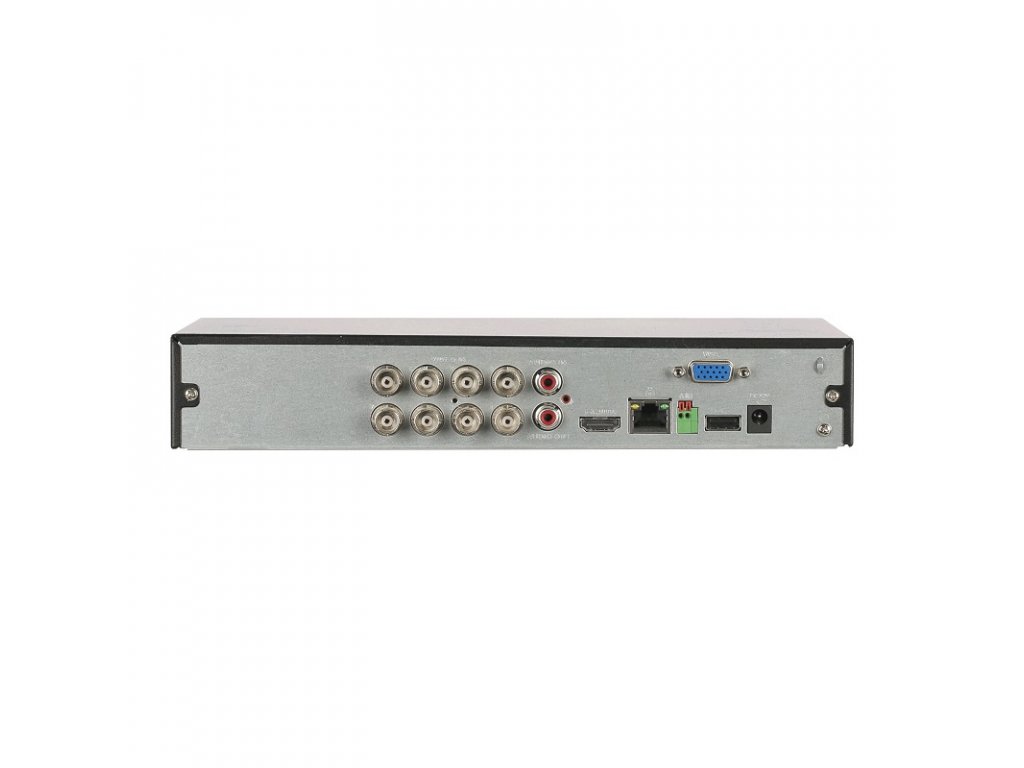 HDCVI Videorekordér 8x Analógový kanál (HDCVI, AHD, TVI, CVI a CVBS) max. rozlíšenie 8 Mpx, + 8x IP max. rozlíšenie 8 Mpx, dátový tok max. 128 Mbps (analógové kanály konvertovateľné na IP); inteligentné funkcie (niektoré AI funkcie nedostupné pri zapnutom IP rozšírení): Quick Pick 2.0 max. 2 kanály, IVS (perimeter Protection) max. 8 kanálov, Face Detection max. 2 kanály, Face Recognition max. 2 kanály, SMD Plus max. 8 kanálov, Video Quality Analytics max. 8 kanálov, Scene Changing max. 1 kanál, Irregular Black Block Masking max. 1 kanál, EPTZ max. 1 kanál, Privacy Protection max. 1 kanál; 1x HDMI (4K), 1x VGA, 1x RS-485, 1x USB 2.0, 1x USB 3.0, 1x RJ-45 10/100/1000 Mbps, 8x BNC, Audio: 8x BNC Audio, 1/1 I/O Audio RCA, 1x SATA max.: 16 TB, napájanie 12 V DC / 2 A, Rozmery: 260 x 237,8 x 47,6 mm, hmotnosť 1 kg (bez HDD), pracovná teplota do -10 °C do + 55 °C